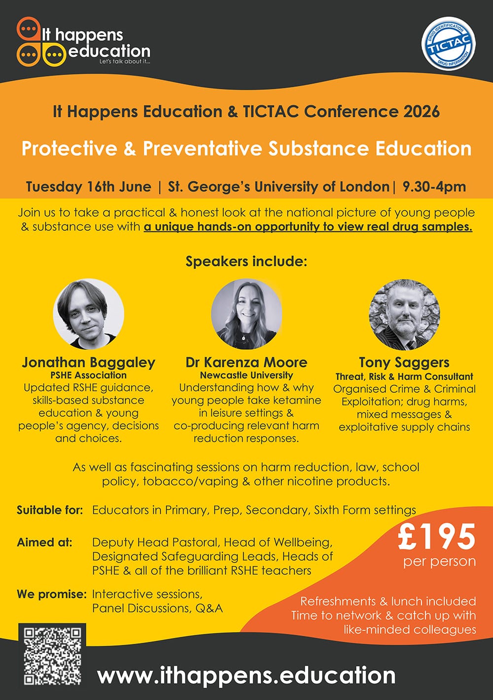 "The 5th & L6th Form talk hit all the right notes: it was interactive, evidence based, fast paced and deeply realistic in terms of what it expected teenager experiences at house parties and festivals to be like. I was truly impressed."
